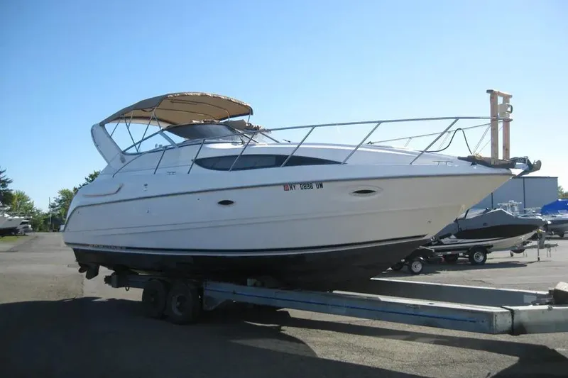Introducing the Bayliner 3055 Ciera Sunbridge DX/LX, a remarkable 31.5-foot cruiser that embodies both style and performance. Built in 2000, this used vessel features a robust fiberglass hull with a modified vee shape, ensuring a smooth and stable ride on the water. Powered by twin 5.0 L Bravo II MerCruiser engines, each delivering 220 horsepower, this boat promises exhilarating adventures with reliable inboard/outboard performance. The electric windlass adds convenience, making anchoring effortless. With a well-designed layout, the Bayliner 3055 offers comfortable accommodations, including a head for added privacy. This cruiser is perfect for day trips or weekend getaways, providing ample space for relaxation and enjoyment. Experience the joy of boating with "The Crossbar," where quality craftsmanship meets exceptional functionality, making it an ideal choice for both seasoned sailors and newcomers alike.