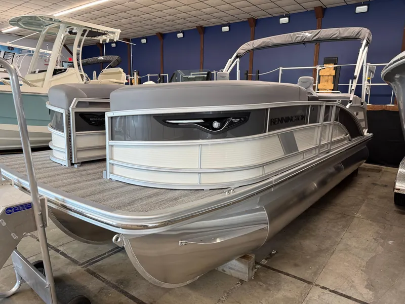 Introducing the stunning 2025 Bennington M Line, a remarkable new pontoon boat that promises an exceptional on-water experience. With an overall length of 24.25 feet, this vessel boasts a sleek fiberglass hull designed in the classic pontoon shape, ensuring stability and comfort during your adventures. Equipped with an outboard engine, the M Line is ready to deliver reliable performance, making it perfect for leisurely cruises or exciting water sports. The boat's thoughtful design includes ample space for relaxation and entertainment, ideal for gatherings with family and friends. With its modern aesthetics and quality craftsmanship, the Bennington M Line is not just a boat; it's a lifestyle choice for those who appreciate elegance and functionality on the water. Experience the joy of boating like never before with this exceptional pontoon that combines style, comfort, and performance seamlessly.