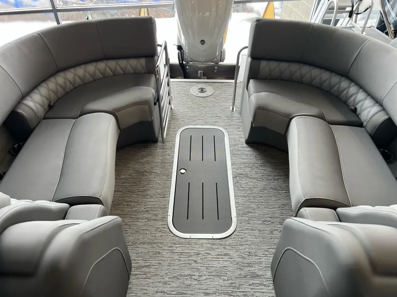 2025 bennington 24 R bowrider fastback with the arch. Powered by a yamaha 300. Loaded with options including upgraded stereo, all new dash for 2025, yamaha command link digital controls and much more. Unique to the bowrider is the 2 steps down in the bow allowing the operator to see over top of everyone in the bow.