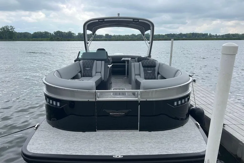 Brand new Bennington 25 RX Fastback with the cladded arch. Heavily optioned boat including upgraded stereo, lighting package, collapsible keeper rail, and bow gate seat. Boat has 6 hours on it for photo shoot for Bennington 2026 brochure. Call for discount pricing!