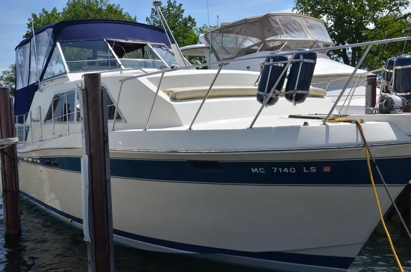 Freshwater / Great Lakes boat since new this vessel features Twin MerCruiser 454-cid 340-hp Gas Engine's with 1241 original hours. Notable features include but are not limited to the following: Custom Salon Bench Seating with Storage. Durable and Easy Lonseal Flooring throughout Salon and State Rooms, Air-Conditioning & Heat (1-Unit), (2) Heads (Electric Flush) w/Vanity/Sink/Stall Shower (Tub in Master), Electronics Package (VHF Marine Radio, Depth Sounder, GPS/Chartplotter, Onan 6.5kw Generator, Cockpit Hardtop w/NEW Full Isin-Glass Surround, AM/FM Stereo System, Swim Platform w/Boarding Ladder, and MUCH more!