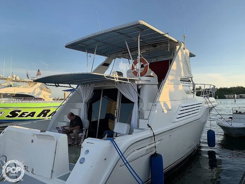 This 4285 Cruisers has a large cockpit with twin staircases leading to a massive bridge with seating for 10 to entertain and socialize on a grand scale. She has a fully cored hull with prop pockets and boasts a wide 14' 6" beam. The hatches in the cockpit offer easy access to the engines and generator. This Yacht will easily cruise 20 knots all day long with 3208 Cats rated at 435hp.