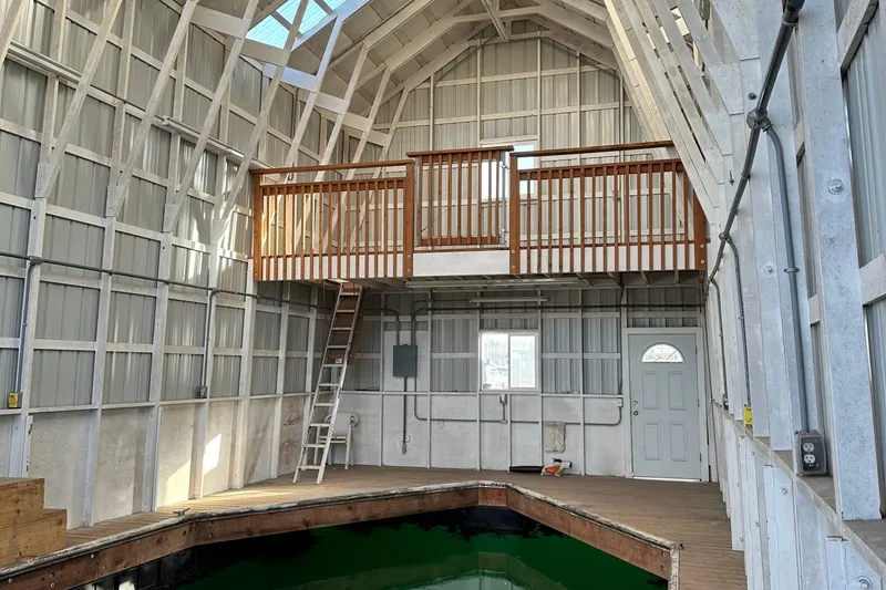 WELL SIZE 40'6' X 16' WITH 23'6" HEIGHT CLEARANCE! VERY NICE AUTOMATIC ELECTRIC ENTRANCE RETRACTING DOOR. MODERN PLASTIC FLOATATION TUBS. A VERY WELL BUILT 9'6"X20' UPPER BALCONY.