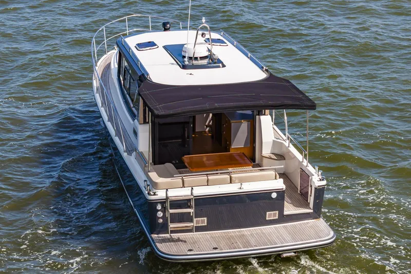 Her sturdy semi-displacement hull not only provides excellent fuel economy and range but also a reassuringly comfortable ride. 360 views through large salon windows. Two private cabins with option of salon convertible berth.