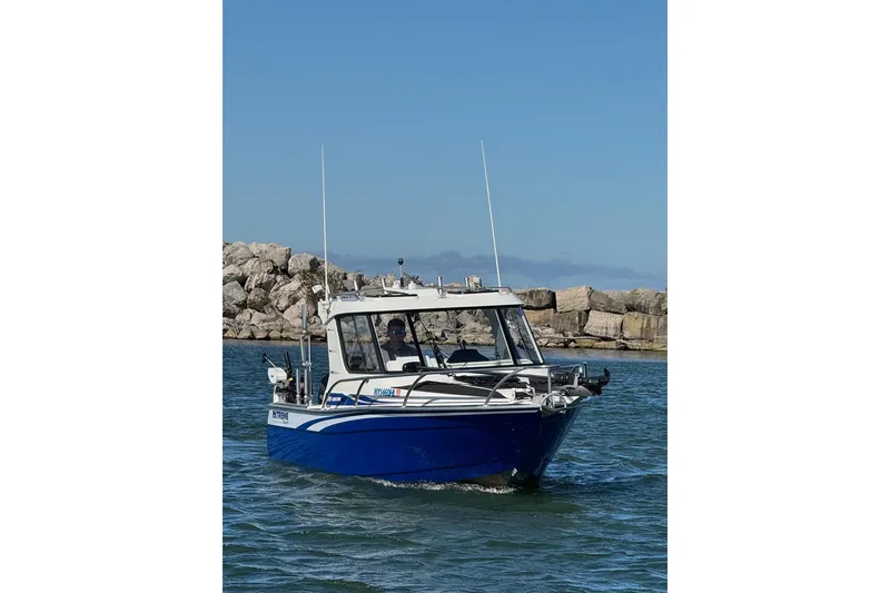 Introducing the 2023 Extreme Boats 695 Game King, a remarkable aluminum fish boat that combines durability with performance. Measuring an 23'.2" in length, this vessel is designed for avid anglers seeking adventure on the water. Powered by a robust 225 hp Mercury 4-Stroke outboard engine, it delivers reliable performance with 170 hours of use, ensuring you can confidently navigate various water conditions. The stainless steel 3-blade propeller enhances efficiency and responsiveness, making every outing enjoyable. The aluminum hull not only provides strength but also contributes to the boat's lightweight design, allowing for easy maneuverability, and fuel efficiency. This model is perfect for those who appreciate quality craftsmanship and modern engineering in their fishing experience. With its sleek design and powerful engine, the Extreme Boats 695 Game King is ready to elevate your fishing adventures to new heights.