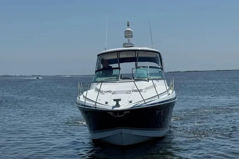 The 40PC by Formula is a extreamly high-quality and popular mid-cabin Cruiser. She features a hard top with a full camper enclosure and a spacious cockpit with seating for 6-8 adults. The master stateroom is forward with a centerline berth and the head features a separate shower stall and vacuflush toilet. The salon features a curved dinette to starboard and a fully equipped galley to port with Corian countertops. The mid-cabin adjoins the salon and provides additional seating and converts to a full-size berth for sleeping 2 adults. Powered by Twin Volvo IPS 500 with joystick control.