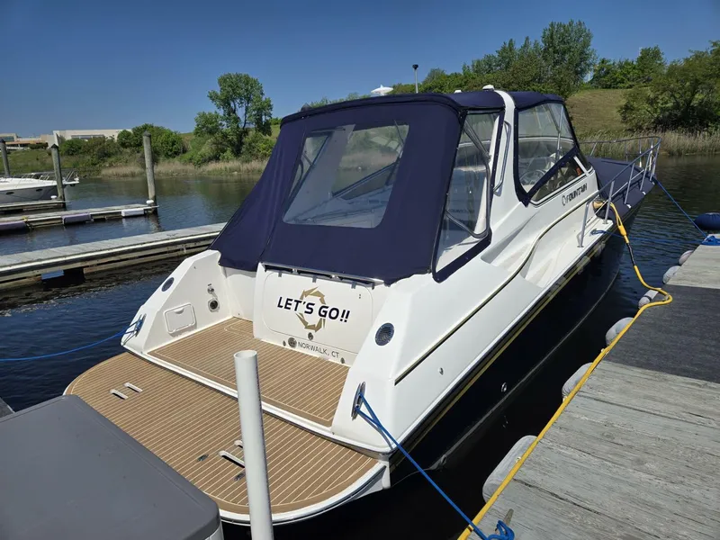 A highly desirable and classic Fountain 38 Express Cruiser with the open cabin layout and limited production staggered motor configuration lovingly restored and upgraded is now available for sale. With a top speed of 60 mph and most efficient cruising at 42 mph and 3500 RPMs, you can get to your destination quickly, while cruising in style and comfort with cabin and cockpit climate control and top of the line stereo system, and smooth cruising with the deep V stepped hull. Take a day trip to Block Island and be back in time for dinner! The 90 nm trip from Norwalk Harbor, CT to the Great Salt Pond, Block Island, RI takes only 2 hours 15 minutes and burns a mere 63 gallons of gas. Exclusively maintained and rebuilt by her professional marine mechanic owner, no detail has been overlooked. Come take a look and make this one-of-a-kind vessel yours today!