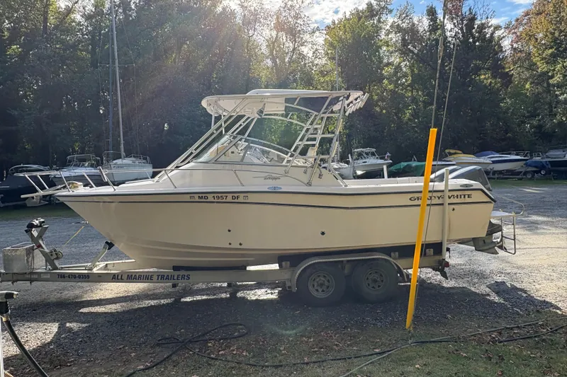 Deep-V solid fiberglass and a 9' 7" beam make this an especially desirable offshore platform. Grady-White has an excellent reputation for build quality and ride comfort, and this vintage (early 2000s) is still considered one of their "golden eras" of manufacturing.