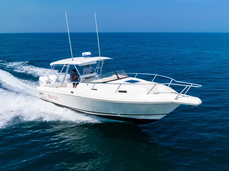 This 339 Fisherman is the ultimate blend of versatility and performance. Whether you're chasing pelagics offshore, island-hopping with friends, or sneaking in an overnight adventure, she's ready to deliver. With new Mercury Verados and a host of recent upgrades, "Bingo" is turn-key and waiting for her next chapter!