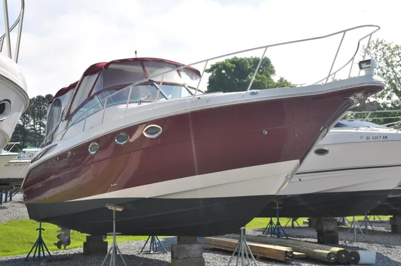 The Monterey 322 Cruiser has a forward raked radar arch that casts an eye-catching profile on this contemporary classic. Sleek, sophisticated and stylish, the 322 Cruiser has features like a molded-in anchor pulpit, foredeck sunpad, three strategically located deck hatches, and an easy-access walk-through windshield. The oversized cockpit boasts a portside molded-in working wetbar with storage and an optional icemaker. The stylish helm offers a split three-person bench seat, and when it's time to go overboard, there's a large transom swim platform with a recessed, telescopic boarding ladder. The popular extended swim platform comes with its own recessed boarding ladder. Aboard the flagship of the Monterey line, hatches and portholes make the interior a bright, airy haven. A comfortable forward double berth with privacy curtains and a plush mattress means secluded luxury for overnighting. The starboard L-shape dinette converts to a cozy berth. Direct / indirect 12-volt lighting creates a warm, well-lit ambiance enhanced by the rich, robust tones of a premium grade sound system. A well-equipped galley comes with standard coffee maker and microwave oven.