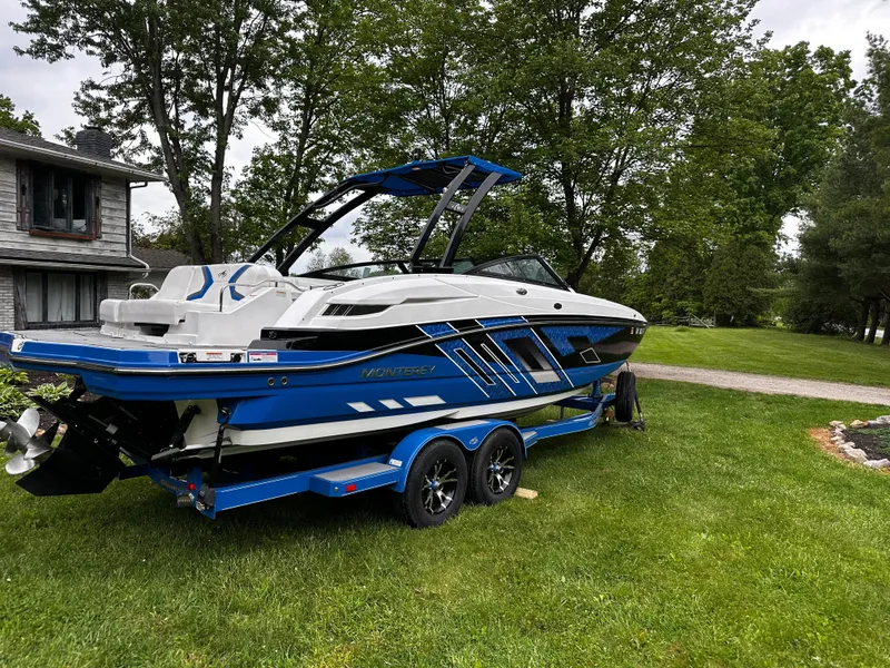 Everything you'll need to enjoy a full day of cruising, skiing, wakeboarding and tubing awaits you aboard the Monterey Boats M6. Features spacious seating and storage options, a head compartment, two recessed and telescoping boarding ladders located in the bow and stern, and a Fusion satellite ready AM/FM stereo; throw in the optional wet bar and you'll have everything an active crew could ever need to enjoy a day out on the water. With the standard signature graphics and colored hull and deck, you're sure to have one of the sharpest boats on the water. The M6 is style, luxury and performance personified.