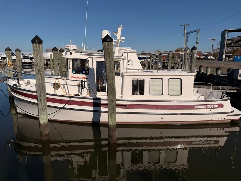 This 32' Nordic Tug is one of the few available for sale on the East Coast. Located in fresh water at the top of the Cheasapeake Bay in North East, MD. Lots of pictures and information are included in the write-up.While photos and descriptions provide details, nothing compares to seeing the boat in person. If you're interested in this Nordic Tug or a similar vessel, a personal inspection is highly recommended. The current owner the third owner is retiring from boating, Contact us to discuss further by phone or to set appointment for viewing.