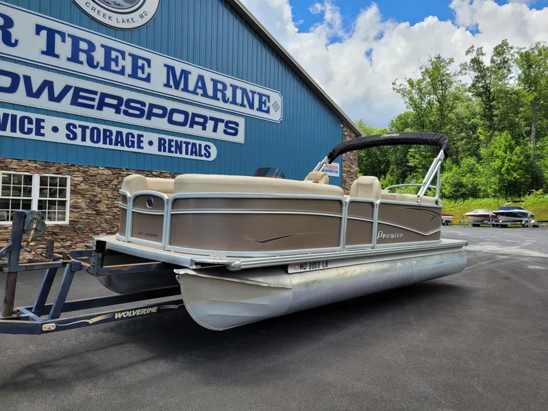 2022 Premier Sunspree 220RF pontoon with 90hp Honda outboard engine. Maintained by Honda certified technicians. Features include: full cover, bimini top, ski tow bar, swim deck with ladder, LED docking & NAV lights, Bluetooth stereo and Lowrance Hook fish/depth finder. Max capacity of 11 persons.