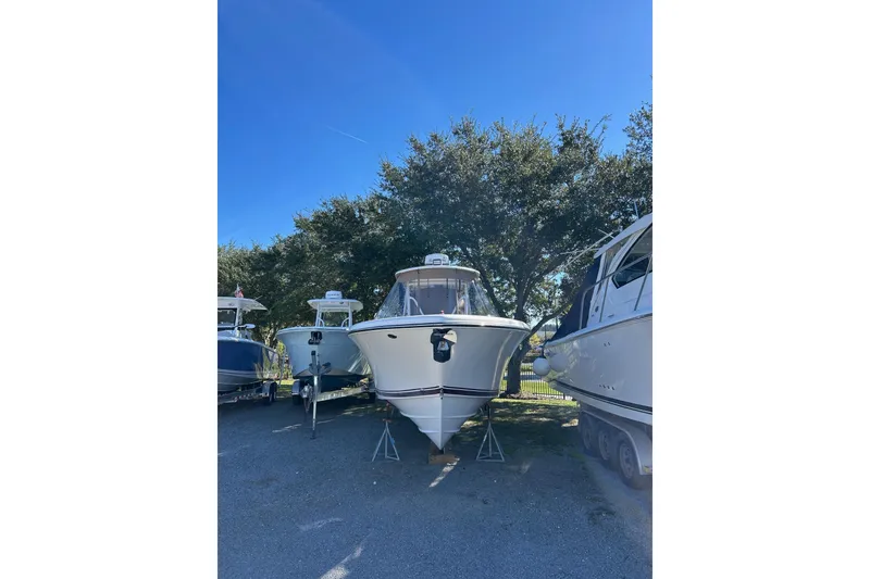 The head compartment within the console features room for storage and contains a manual head with holding tank, pumpout and macerator. The forward console seat base houses a 140-quart cooler and features a plush three-inch thick seat cushion. The molded-in split bow and companion seating affords additional seating as well as unobstructed bow access for anchoring, docking or casting.