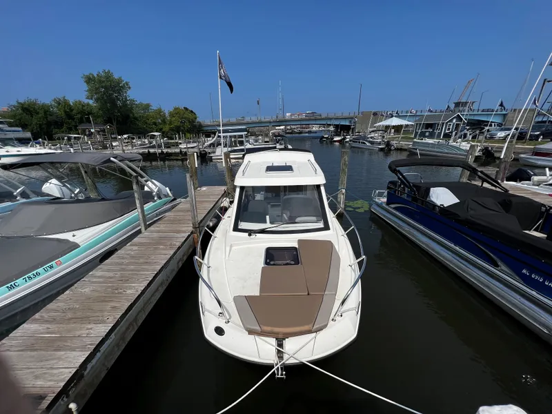 Stock Number: FBC-CC-008, Well Maintained, Fresh water vessel, Mercury 225HP with 75 hours. The 675 Weekend is the most compact model in the Weekend range. Its the only one that you can still transport on a trailer. Also, its size makes it easier to find a mooring space in a marina. At the same time, it does fit 8 people and 2 can spend the night. STANDARD EQUIPMENT: Bow Roller, Swim Ladder, Navigation Lights, Forward Line/Anchor Locker, Self Bailing Cockpit, Rod holders, Swim Platforms, LED Courtesy lights, SmartCraft Speedometer/, Tachometer, 12v,, Electrical Socket, Aft Bench Seat, Storage below Aft Seat, Cockpit Cushions, Upgraded Cockpit Table, Cockpit Shower, Transom Door, Aft Seat Extension L-Lounge, 3 Berths, Storage below Berth, Pilot Seats with Flip Bolster and, Swivel, Dinette Seat Configuration, Berth Cushion/Filler, Deck Hatch, Sink with Tap, Dual Battery System, CO Monitor, Smoke Detector Fire Extinguisher, Hydraulic Steering, Electric & Manual Bilge Pump, Starboard Windscreen Wiper, Windscreen Wash, OB Pre-Rigging, Vessel View Mobile, Active Trim 175 HP and up Electronics Pack with Larger GPS, Screen