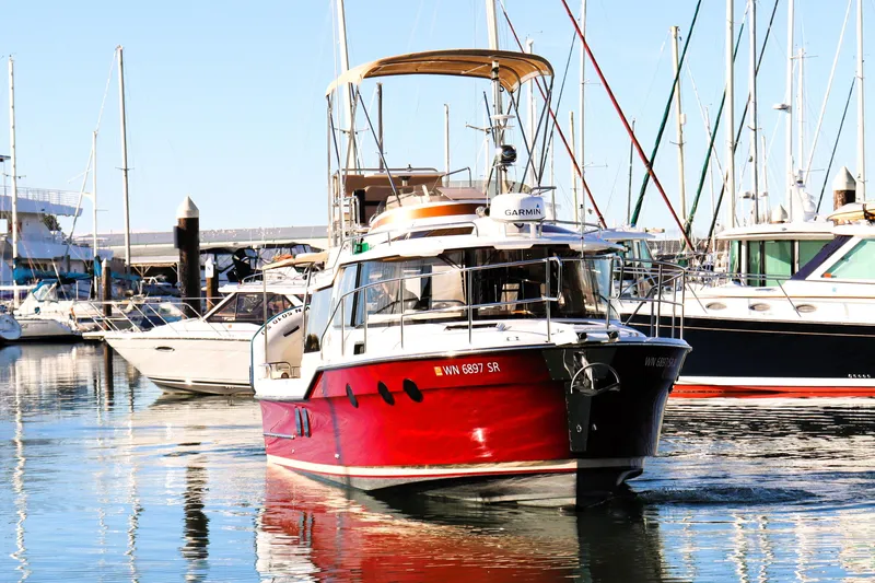 This is a rare and very well-maintained Ranger Tug R-29 CB. The owner has taken pride in the boat exceptional condition. The boat looks new with recently ceramic coating, new custom canvas tops, and so much more!