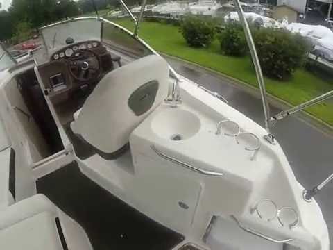 There are more cubic feet of livable interior space in this 25 Express than in Express Cruisers two feet longer. It's lighter, brighter and airier than any conventional trailerable cruiser. The large, windowed main cabin offers a comfortable dining area that converts to an oversized berth. There's a full standup head compartment, and the galley is complete with stove, sink with pressurized water, refrigerator, microwave and Corian countertop. The mid-cabin comfortably accommodates children or adults in the large berth. All this in a 25-foot trailerable cruiser that offers the highest level of standard equipment, equipment you would pay for as options on similar cruisers. The stand-up head compartment contains an integrated sink with hot and cold pressurized water, generous storage and a standard VacuFlush head.