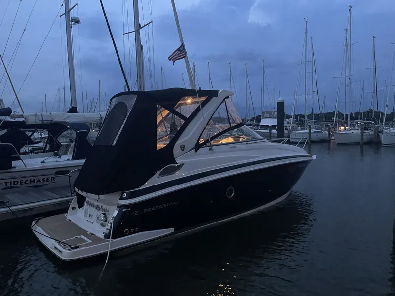 2017 Regal 2800 Express. Volvo V-8 350-C. 440 Hours. Volvo Duoprop. Cockpit Cover. Power Arch with Bimini Top and Full Camper Enclosure. Cockpit Matting. Air w/ Reverse Cycle Heat. Generator. Bow Thruster. Trim Tabs. Windlass. Spotlight. Dual Batteries. Power Engine Hatch. Shore Power. Battery Charger. Dockside Water Hook Up. Fresh Water Transom Shower. GPS. VHF. Stereo. Boat kept inside Hi and Dry.