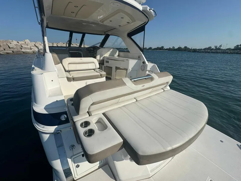 2016 Regal 35 Coupe – Lightly Used – Hammond, IN This 35 Coupe is a turnkey express cruiser with under 655 hours on twin MerCruiser 350s. Exceptionally clean and well-maintained, she’s available now in Hammond, Indiana, as the owner has taken delivery of his next boat.