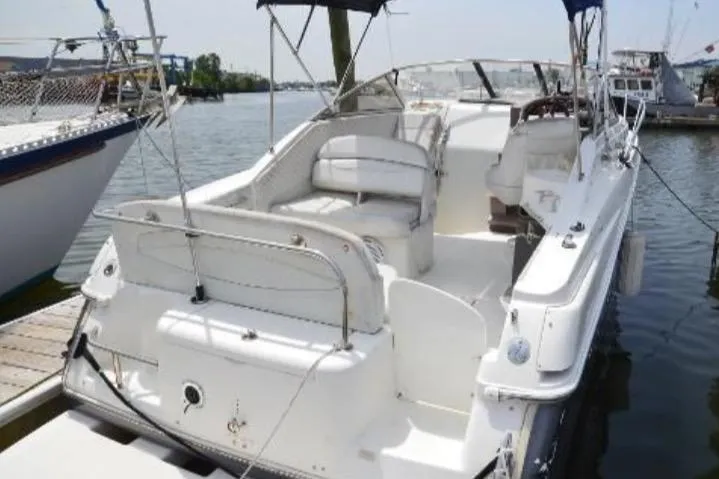 Powered by efficient sterndrive engines, the 2765 Commodore delivers solid performance and handling, while its deep-V hull ensures a stable ride in various water conditions. Inside, the mid-cabin layout provides sleeping accommodations for up to four, along with a private head with a shower, enhancing onboard convenience.