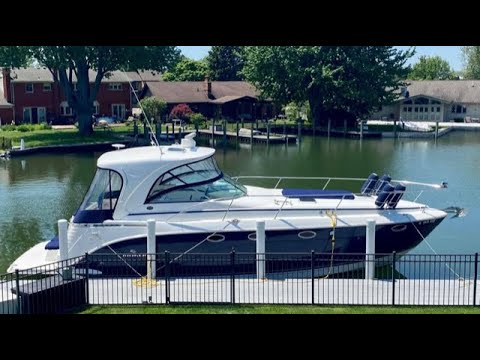 very spacious and well appointed express cruiser with the following features; 2 stateroom single head with a stall shower, full galley, large salon, storage throughout, twin low hour(200) mercury sea core mag mpi 8.1 liter 496 fresh water cooled 375hp engines with bravo 3 outdrives. generator with 100 hours, vetus bow thruster, air and heat, windlass anchor, raymarine c120 color radar/gps/depth finder, vhf radio, robertson autopilot, remote spotlight, stereo with speakers throughout, 3 flat panel tv's. 2 tier cockpit with roomy seating for many, ckpt wet bar with fridge and icemaker. transom door to large swim platform with a ladder. two 30amp shore power service, battery charger, hot water, dockside water.
