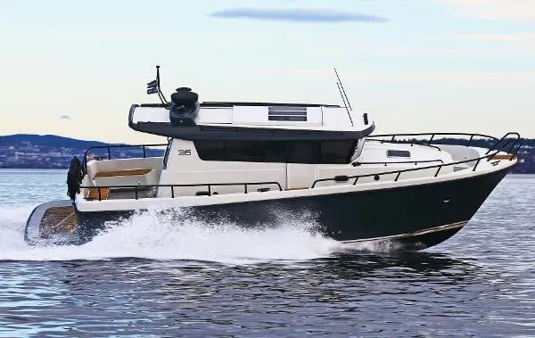 Sargo 36 boasts a large, seaworthy hull providing a soft and dry ride due to the raised bow section. The extra wide walkaround layout features the non-skid single-level deck typical for all Sargos, making it both easy and safe to freely move around. An extra large sliding cabin hatch consisting of three windows lets the sunshine and fresh sea air in. An inviting gathering area can be found on the stern deck.