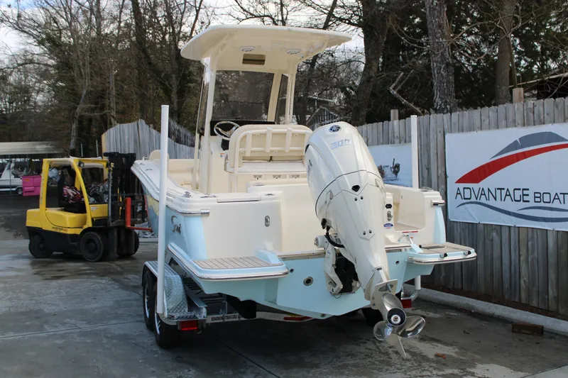 The 220 XSF is built on Scout's revolutionary fuel saving NuV3 hull design, with no sacrifice on performance. while the deck offers ample standard amenities for everything from serious fishing to comfort cruising. Built with 100% hand-laid fiberglass, the boat boasts a wide comfortable beam of 8' 6" with an overall length of 21' 6". A notable standard feature onboard the 220 XSF includes not only the forward seating in the bow, but also a forward sun lounge/coffin box complete with a cushion.