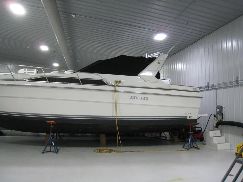 Introducing the 1986 Sea Ray 340 Express Cruiser, a stunning example of craftsmanship and performance in the express cruiser category. With an overall length of nearly 34 feet, this vessel boasts a sleek fiberglass hull that promises durability and style on the water. Powered by twin Mercruiser 7.4/454 inboard engines, each delivering an impressive 340 horsepower, this cruiser is designed for exhilarating adventures. With only 20 hours on the engines, you can enjoy peace of mind knowing they are in excellent condition. Equipped with an electric windlass, this boat enhances your anchoring experience, making it easier to enjoy your time on the water. The Sea Ray 340 Express Cruiser is perfect for those seeking a blend of comfort and performance, making it an ideal choice for both leisurely cruising and spirited outings. Experience the joy of boating with this remarkable vessel!