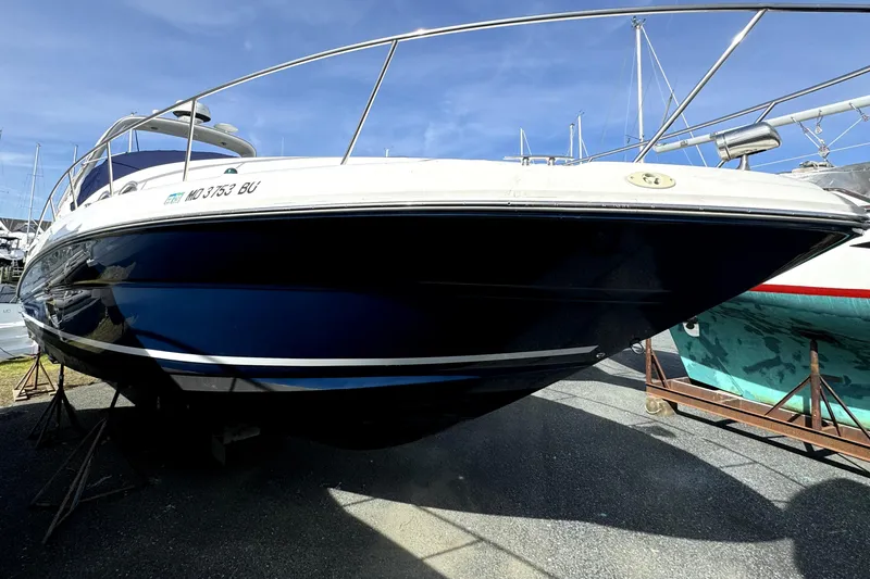 There's nothing quite like the exhilarating profile of this sleek 320 Sundancer. Its dramatic lines and bold colors make everything else look like it's sitting still. Exciting features include cockpit wet bar with Corian counter, extra-wide bench-style helm seating with two flip-up thigh-rise bolsters, optional underwater swim platform lighting, premium cabin surround sound, and lots more.