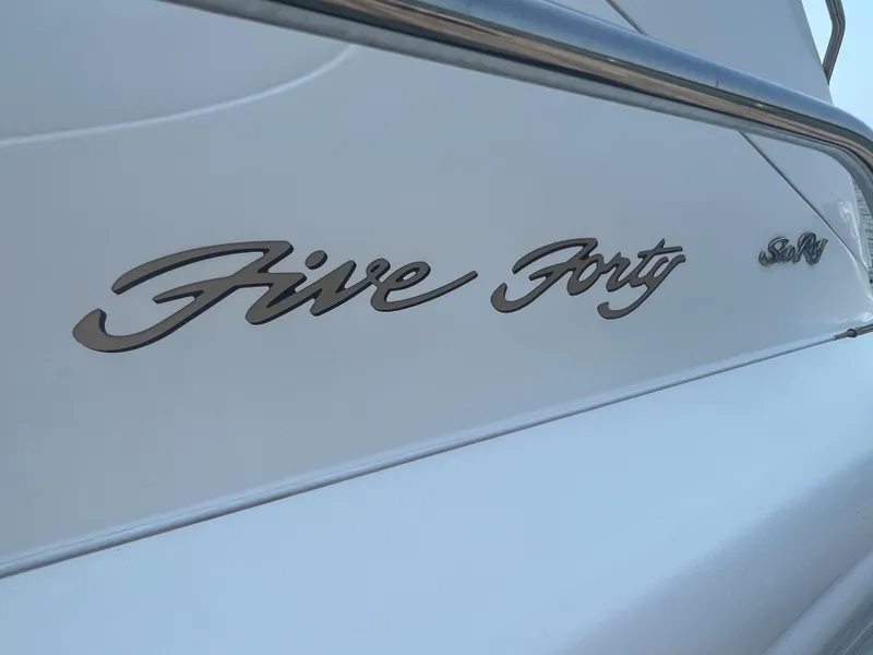 The Sea Ray 540 Sundancer, with its raised helm area design, gives the same amount of privacy and cabin space expected on an aft-cabin model, yet with all the open cockpit room of an express cruiser. On deck, the cockpit of the 540 Sundancer has a stylish sport spoiler, custom slide - swivel flip-up helm seat and Euro-styled companion bench seat. The U-shaped seating area has an electrically actuated retractable sunpad and there's an optional recessed sunpad available for the fore deck too. Even though the 540 Sundancer can be comfortably handled by two, you'll most likely want to share the wealth of standard features with family and friends, including a wet bar with cooler and icemaker, an aft cockpit sun shade, cable TV outlet and a Clarion AM-FM digital cassette stereo with six-disc CD changer subwoofer, amplifier, four speakers, and cockpit remote control. Even with so much of the cockpit dedicated to passenger space, there's also abundant room for personal gear in the port and starboard side compartments and docking equipment stows away neatly in the aft deck. The large private cabin of the 540 Sundancer is just as well-appointed as the cockpit with granite-colored countertops, dimmable lighting, and handcrafted wood trim in either vitricor cherry or clear maple finishes. Custom curtains, deep-pile stain-resistant carpet and concealed floor storage accentuate the modern decor. The mid-ship master stateroom has a queen-size bed with innerspring mattress and a gas-assisted hatch that reveals carpeted storage underneath. There's also a standard entertainment center with a TV - VCR - radio combination and a Bose Acoustimass 3 speaker system with remote control. A full-size bed and additional storage space make the guest stateroom perfect company. Both the master and guest head areas offer a VacuFlush head, power vents, striking cultured marble flooring, and Corian countertops with Grohe designer faucets. In the salon, a curved Ultraleather HP sofa cleverly hides an electric slide-out bed. There's even a concealed privacy curtain that pulls out when needed. The hidden, but complete galley has a three-burner cooktop, refrigerator - freezer with icemaker microwave - convection oven and a convenience package featuring a Spacemaker coffeemaker. In fact, all the comforts of home are present in the 540 Sundancer, right down to the standard washer - dryer combination and salon entertainment center with a color TV - VCR with remote and a Bose Lifestyle 20 stereo system with Jewel Cube speakers and LS bass module. From a technical standpoint, this boat is a masterpiece with responsive twin Detroit Diesel 6V-92TA inboards (T535-hp - 399-kW) and every control needed for unquestionably smooth sailing including a full Raytheon electronics package. The 540 Sundancer has a multiplexed digital LCC systems monitor for quick engine diagnostics and pump monitoring. The 12.5 kW Westerbeke remote generator has its own instrument panel, and there are also four large 8-D batteries with main battery solenoids and a distribution panel for power monitor The new 540 Sundancer has a hydraulic lift swim platform, fiberglass hardtop, and a multitude of engine and electronic upgrades.