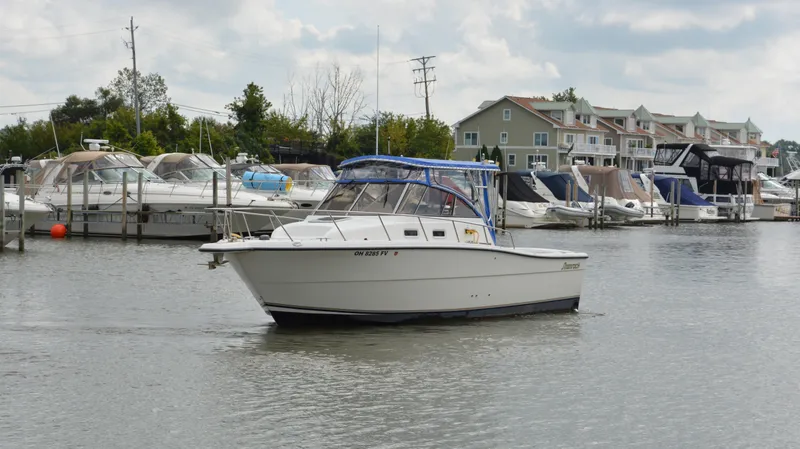 Clocking in at over 11,000lbs, the Shamrock 29 is a sportsman dream on Lake Erie. Especially in the late fall and early spring fishing seasons. However, don't let that fool you, as this rig has plenty of creature comforts to go around. A fully enclosed canvas protects the cockpit and passengers on those extra wet days. As you move into the cabin, you are greeted by dark wood finishes and plush upholstery. The cabin features a vaccuflush head, heat and a/c, plus microwave with an electric stove. For a full rundown, give us a call today!