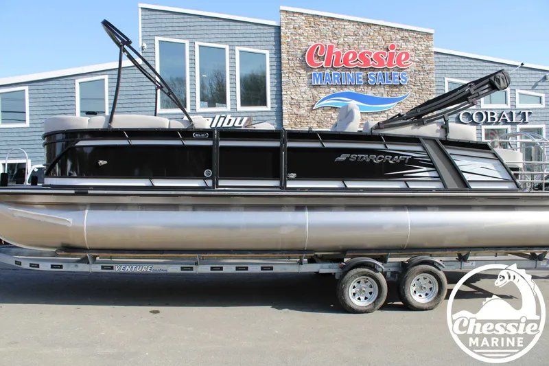 2024 Starcraft Pontoon SLS-5 Q DH, Standard Features Dash/Console Auxiliary MP3 Port AM/FM Stereo with Bluetooth Electrical Voltmeter Speedometer Courtesy Lights Docking Lights Fuel Gauge Canvas Power Canopy Miscellaneous Black Anodized Rails, Deck Trim & Top Frame Removable Cupholders Full Heavy Hat Understructure Extended Rear Deck Windscreen Deck Cleats (4) Custom Molded Dash Power Point with Breaker Steering Gussi Italia Verona Steering Wheel Seastar Hydraulic Steering Hull Construction Marine Grade UV Stable Carpet 25 Diameter Aluminum Pontoon Tubes All Welded Aluminum Transom Marine Grade Plywood Decking Performance Shield Deck Amenities Rotocast Furniture Bases w/ Integrated Drains Changing Room High Back Helm Seat Wide Handle Stainless Steel 4-Step Ladder Ski Pylon Additional Features Mercury DTS Controls w/Engine (Requires Hydraulic Steering, Engine-House Dual Battery System and Smart Craft Gauges) Fuel/Water Separator (Already Included with Yamaha pre-rig) Hang Engine & Rig Controls Coastal Edition (SD Tubes, Extended Deck (When Not Standard), Extruded Performance Strakes, Anodes, Coastal Water Edition Graphic) In-Floor Storage (PR25 Center Tube Only) Mercury Advanced Power Assist Steering (Requires Mercury DTS Controls, Smart Craft Gauges, Dual Battery, Verado Engine) Sea Weave (Full) Lighted Cup Holders Humminbird Helix 5 (in-Dash Graph/GPS) MFD Integration Components Mercury DTS (Required on Boats with a Simrad Graph and Digital Controls) Engine-House Dual Battery System Playpen Cover (Black Only for MX, S, M and SX Series) Playpen Cover Install Double Top (Not Available with Wake Tower or Sport Arch) Deluxe Deck Mount Ski Tow (Requires Extended Deck) Raised Helm Platform Cell Phone Holder Audio Plus 225 Sound Package Includes: 4 - JL Speakers, Requires JL MM50 Stereo, Required for Rear Facing Speakers When Available on CX, SLS, L Series Venture Trailer