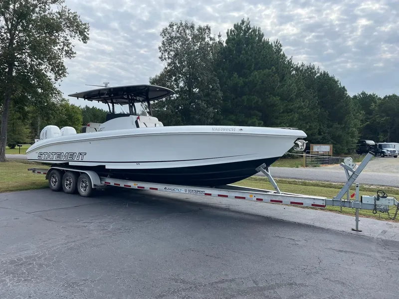 Introducing the stunning 2018 Statement 35 Center Console, powered by twin Mercury 300 Verado white motors. This exceptional boat has been meticulously maintained, boasting a mere 569 hours of use, making it not just a purchase but an investment in quality.