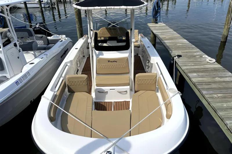 A versatile 22' center-console, perfect for both fishing and family cruising. Features a deep-V fiberglass hull, 65-gal fuel tank, seating for up to 10, and plenty of deck space. Typically powered by a 200 hp Mercury with options up to 300 hp. Includes a T-Top, rod holders, storage, and a self-bailing cockpit. Stable, easy to handle, and trailer-friendly - a great all-around coastal boat.