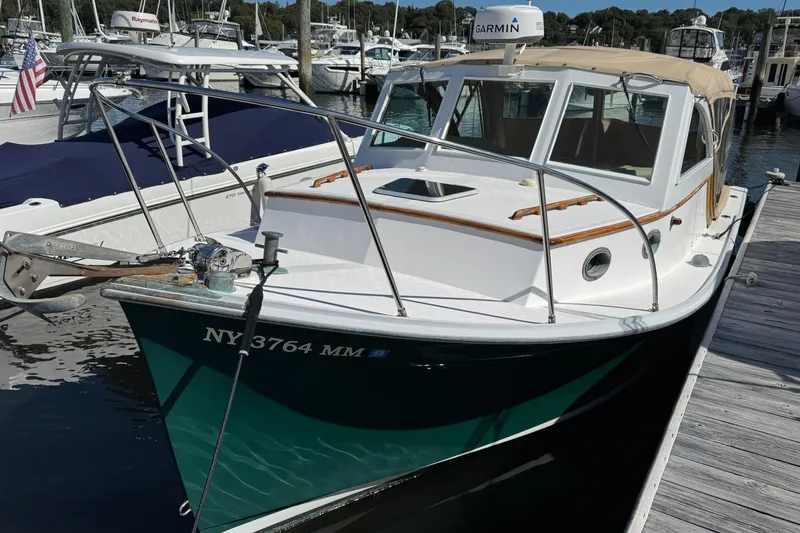 This beautifully designed and Maine built vessel is a perfect blend of design and function. Her classic lines provide not only a look afloat, but enhance the seaworthy handling of this fine little diesel Downeast style vessel. Her varnished mahogany windshield woodwork extends to her cockpit combing boards and add to her aesthetic appeal. Anyone who appreciates the fine lines of a true downeast hull will go weak at the knees on viewing "Early Light".