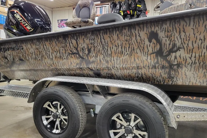 2026 Xpress H22 Bay. 22’ center console w/ hyper lift hull. Duck boat package w/ Camo hull, floor liner & seats. Seadek in cappuccino w/ black lines.