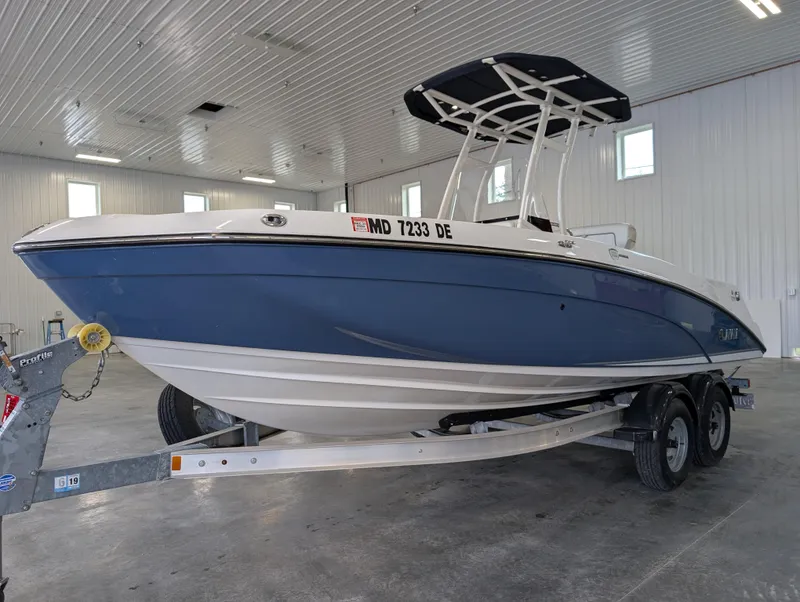 The 210 FSH is available in three variations that include the base model 210 FSH, an upgraded 210 FSH Deluxe, and the flagship 210 FSH Sport that offers the features of the Deluxe with the addition of a custom T-top. All three models come with Yamaha's award-winning TR-1 High Output marine engines.Deluxe model upgrades include wiring for dual batteries, stainless steel rub-rail, head compartment curtain, a trolling motor mount, and upgraded seating/cushions.