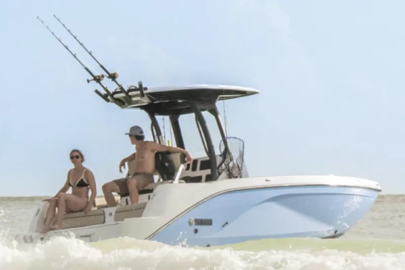 Introducing the stunning 2025 Yamaha Boats 222 FSH Sport E, a new addition to the Jet Boats class that combines performance and style. With an overall length of 22 feet, this vessel is designed for both leisure and adventure on the water. Its modified Vee hull, crafted from durable fiberglass, ensures stability and smooth navigation. Powered by twin 1.9L High Output inboard engines, each delivering an impressive 200 horsepower, this boat promises exhilarating speed and agility. The innovative jet drive system enhances maneuverability, making it perfect for water sports or cruising with friends. Accommodating up to 10 passengers, the 222 FSH Sport E is ideal for gatherings and family outings. Its thoughtful design and robust engineering make it a standout choice for boating enthusiasts seeking a reliable and enjoyable experience on the water. Experience the thrill of the open sea with this exceptional vessel.