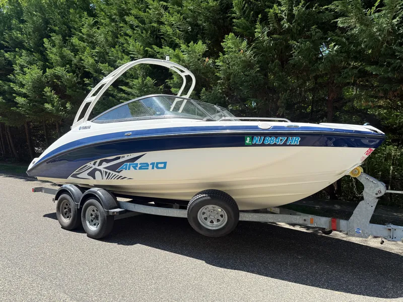Whether you're strapping on a board, pulling a tube or lounging in a cove, the AR210 has what you need. This particular Yamaha AR210 jet boat is powered by twin Yamaha 110HP TR-1 High Outputs with only 36 hours and is in very good condition. The sleek design offers a ton of testing and storage making a day on the water for the whole family easy, the AR210 also offers a Bimini top to keep shade on those sunny days.